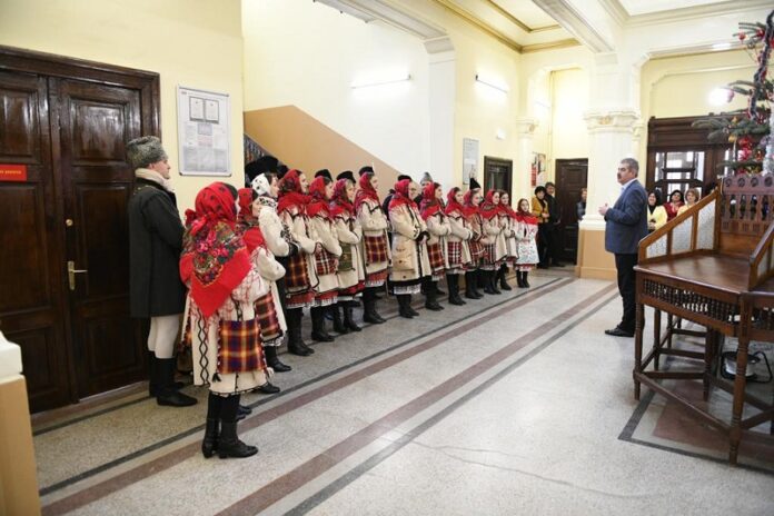 Bucuria redeschiderii emblematicei clădiri a Poștei vechi a fost întregită  astăzi, 22 decembrie, de un eveniment de suflet: colindele cântate de talentații membri ai Ansamblului Folcloric ”Codrii Neamțului”.
