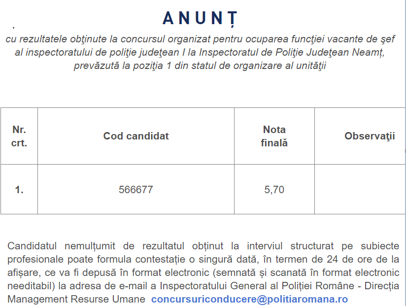 Urmează să vedem cine va fi următorul șef al Poliției Neamț. Împuternicit, desigur, până la organizarea următorului concurs.