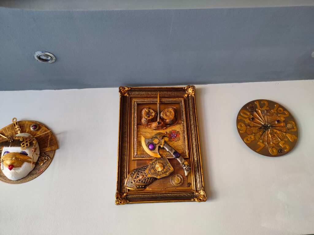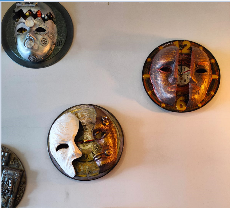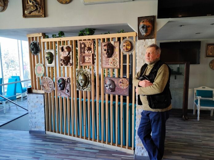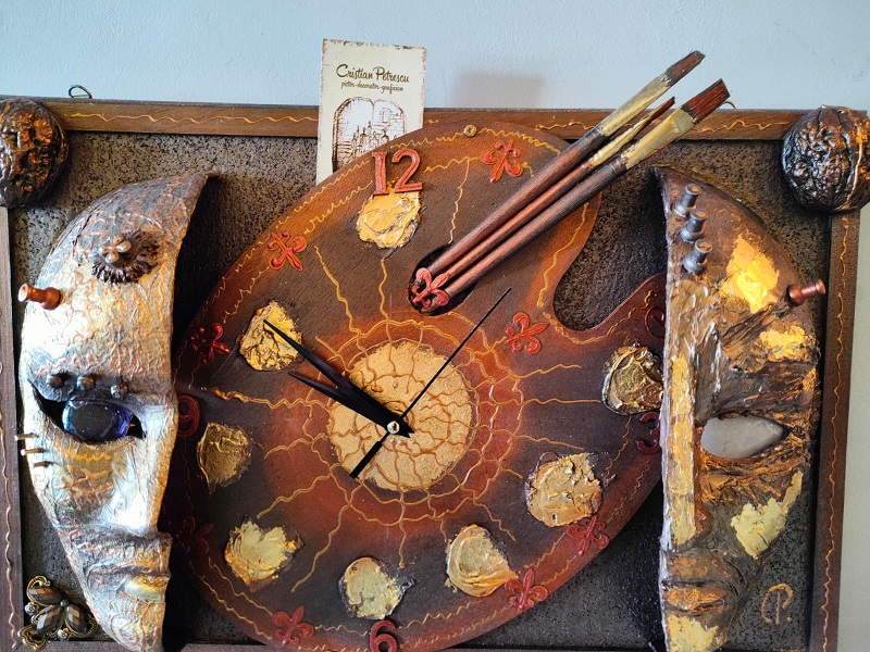 ”Va fi lume, eu zic bună, va veni și cineva care cântă, va fi și domnul Romeo Stoica, profesor și poet, vor fi și doamne profesoare, și doamne care pictează, care înainte veneau la teatru. Eu spun că este o expoziție de artă decorativă, ca să nu intru în conflict cu pictorii, pentru că fac cu totul altceva: măști, ceasuri, pictură în relief, adică niște chestii mai ciudate, dar interesante. Sunt singurul în Piatra-Neamț care folosesc tehnica asta. Am lucrat vreo 18 ani în teatru și combin butaforie cu artă modernă și apare ceva așa, mai deosebit”. Aceasta este invitația, de dincolo de afiș, formulată spontan, în două minute, de Cristian Petrescu – tânărul pensionar, care a crescut în teatru și s-a pensionat de la teatru, unde a lucrat mereu în spatele scenei. La decoruri. Folosind culori și, desigur, talent și suflet. Viața lui e o poveste. O parte din ea va fi expusă, de data aceasta în fața publicului, la Coffee Lapsus by Arena, vizavi de Teatrul tineretului. Mâine, 22 ianuarie, de la ora 11. E un vernisaj și, concret, o expoziție cu vânzare. Faină! Cu speranța șoptită timid ”Să dea Dumnezeu să am clienți!”.