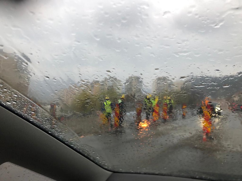 Imaginile cu asfaltări pe ploaie pe care le-a tot postat lumea pe Facebook și au iscat vii dispute sunt deja derizorii față de demonstrația de profesionalism pe care o ofereau, în această după-amiază (11 aprilie), meseriașii care lucrează la podul de la Orion. Ploua de o oră și nu chiar puțin (se vede de altfel în poza făcută prin parbriz) și ”specialiștii” aplicau hidroizolația fără nicio emoție, visând probabil la ”Trofeul Calității” pentru realizarea (tipic românească) a unui proiect european.