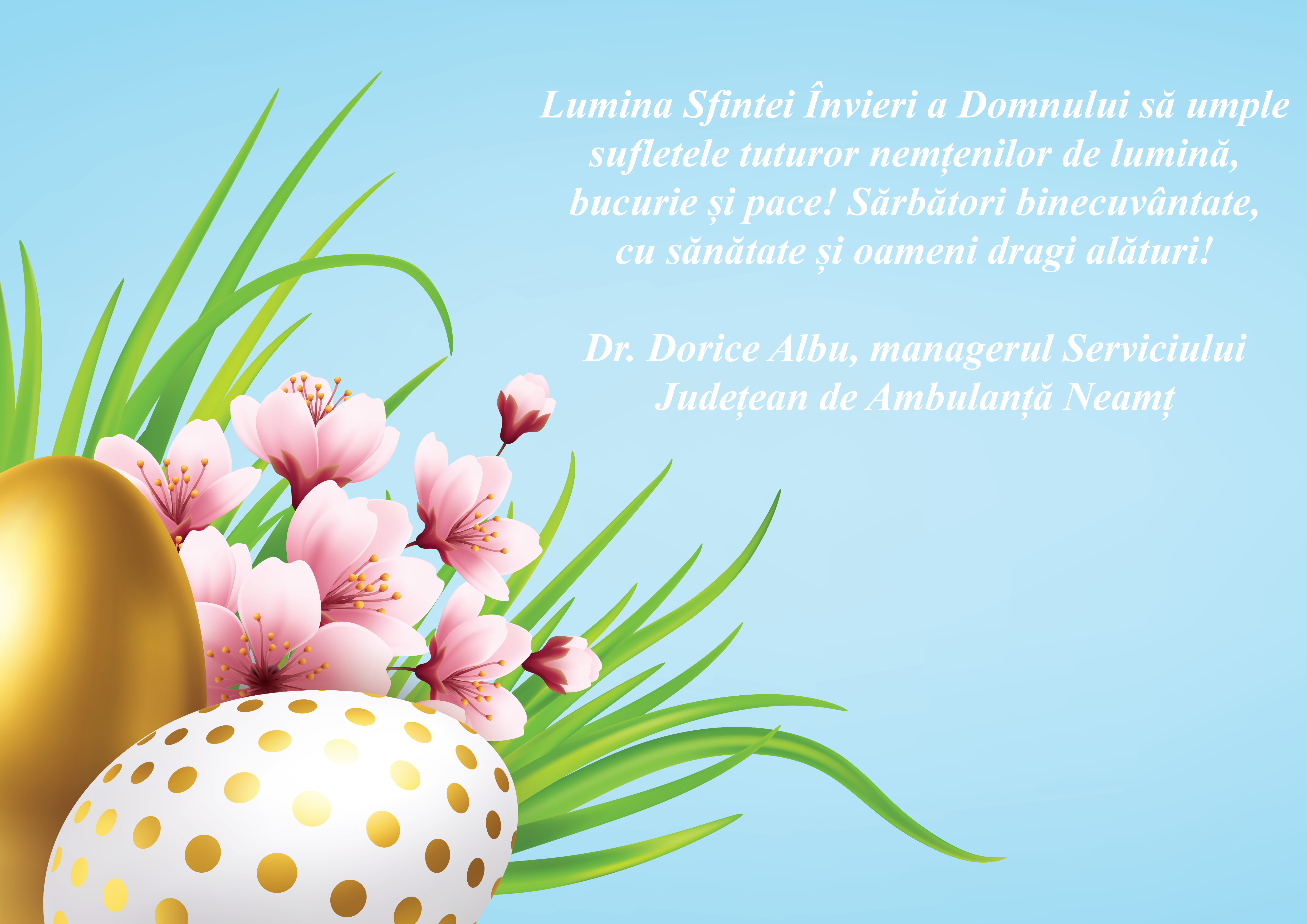 Felicitări de Sărbători Serviciul Județean de Ambulanță Neamț De către AtitudineadeNeamț - 15/04/2023 0 FacebookTwitterPinterestWhatsApp Post Views: 35