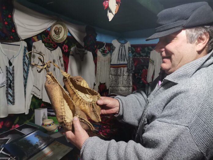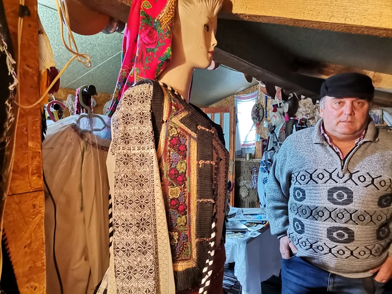 L-am găsit lucrând, în atelierul lui din comuna Ștefan cel Mare, în casa stră-străbunicilor lui, datată 1800 – o casă mică, cu două cămăruțe și o prispă pe care se odihnesc un plug, două butoaie și niște melițoaie. Trăiește înconjurat de frumos – sute de ii, zeci de costume complete, bundițe, opinci, măști – inclusiv cele de urs specifice zonei, ornate cu mărgele, și împletituri din sfoară pe care le face soția lui, Elena. Între timp, strânge scânduri și vrea să caute niște draniță, să acopere casa veche de mai bine de 200 de ani, să fie ”cum a fost odată”.