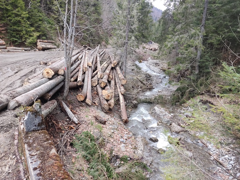 Imaginile vorbesc de la sine. Albiile pâraielor sunt sufocate de lemne și răscolite în așa hal încât nu se mai poate vorbi de protejarea mediului. În plus, trunchiurile copacilor sunt un real pericol în caz de viitură. Urmează ca animalele să fie urcate pe munte, dar nu prea este niciun drum forestier practicabil. Zona este ”administrată” de un ocol silvic privat. Dar totuși, o întrebare rămâne: autoritățile, instituțiile care lucrează cu Codul silvic pe masă, ce fac? Unde sunt?