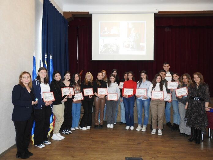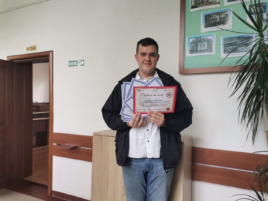 Astăzi, 8 mai, la deschiderea festivă a Zilelor CNCH -113, a fost premiată implicarea – ”faptele vrednice de rosturi temeinice” – cum a spus directoarea adjunctă, prof. Mihaela Cătălina Tărcăoanu. La toate cele 5 secțiuni a primit diplome Liviu Matei Gavril, un tânăr elev în clasa a XI-a la profilul de filologie simplă, care vrea să devină medic: ”Am ales să fiu implicat deoarece am avut dezavantajul, ca să zic așa, să fiu în clasa a IX-a, în timpul pandemiei și nu m-am putut bucura de atmosfera școlii. Încă din clasa a V-a îmi doream foarte mult să ajung la Hogaș, pe acest profil, și am lucrat zi și noapte astfel încât să ajung să fiu cel mai bun. Părinții mei mi-au spus mereu că numai prin muncă reușim să ne dezvoltăm și să avem o carieră strălucită în orice domeniu. Sunt primul din familie care este elev la CNCH, sora mea a absolvit Colegiul Național Petru Rareș, tatăl meu a fost elev al Liceului de marină de la Orșova, iar mama mea a absolvit Liceul energetic. Și sunt primul din familie care-și dorește să devină medic. Am ales Facultatea de medicină de la Târgu Mureș și sper să reușesc. Acum sunt vicepreședinte în cadrul Consiliului Școlar al Elevilor, sunt redactor al revistei Adobiografioființa – care a fost premiată anul acesta, fac parte din colectivul de redacție al revistei de istorie Calistrații, care a fost din nou publicată, după o pauză de 2 ani de zile, iar în Săptămâna Mare am fost voluntar la organizarea Olimpiadei Naționale de Tehnologie. Și am avut 2 ani media generală 10. Învăț zilnic, nu este un efort. Doresc fiecărei persoane din acest colegiu să se bucure pentru că face parte din marea familie a Calistraților, să ne bucurăm cu toții de aceste zile minunate – așa cum a menționat și doamna director, și să sperăm că școala noastră va ajunge și la frumoasa vârstă de 250 de ani. Este o mare onoare pentru această instituție de învățământ – care a avut o istorie destul de frumoasă – și ne mândrim și cu faptul că suntem o școală care a reușit să obțină Medalia Regală pentru Loialitate, conferită de către Majestatea Sa Principesa Margareta, Custodele Coroanei României, în anul 2020, CNCH fiind, așa cum s-a menționat pe diplomă, pepinieră a dezvoltării umane”.