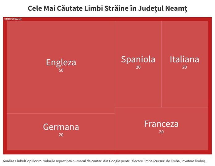 Engleza este de departe cea mai căutată limbă străină atât la nivelul județului Neamț cât și la nivel național, urmată la egalitate de limba germană, italiană, spaniolă și franceză.