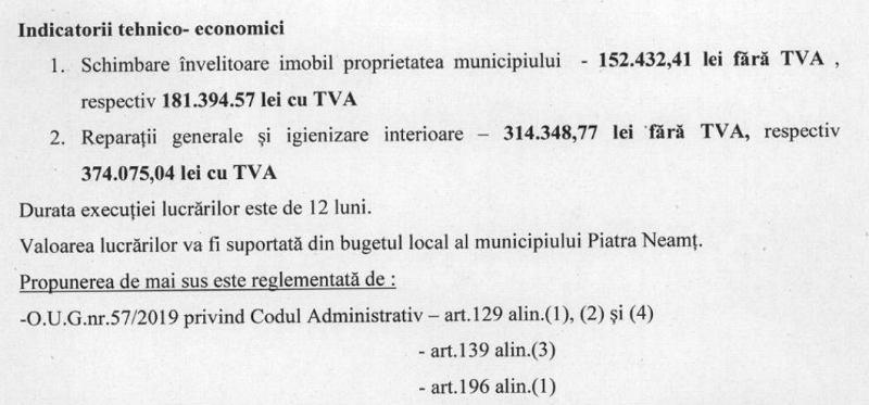 De un ridicol absolut este, însă, povestea cu proiectul de hotărâre de consiliul local, prin care urma să fie aprobată suma necesară reparațiilor – inițiat de viceprimarul Marius Irimia (era totuși incompatibilitatea prea mare să fie inițiat chiar de primar, care este șeful PNL Piatra-Neamț). Raportul de specialitate a fost semnat de reprezentați ai Serviciului Juridic și Serviciului Investiții, plus un director executiv din primărie și niciunul nu și-a dat seama că, fiind vorba despre reparații și nu despre o construcție nouă, nu este necesară o hotărâre de consiliu local. Din acest motiv, înainte de începerea ședinței CL de astăzi, 24 iulie, proiectul a fost retras de pe ordinea de zi. Nemaivorbind că după ce lucrările au fost deja făcute, chiar era momentul să fie întrebați și consilierii dacă sunt de acord!