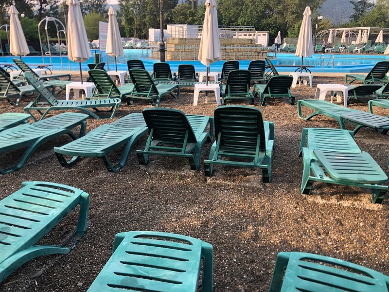 Aspectul ștrandului, în ansamblu, nu are nimic atractiv și astfel se explică numărul extrem de mic de oameni care aleg să-și petreacă timpul liber în acest spațiu, printre terenuri de sport cu lacătul pe poartă și tonete închise. În zi de duminică doar locul de joacă și micul parc de aventură pentru copii sunt ceva mai animate. În rest – de la bazine până la zona de relaxare din fața căsuțelor – pustiu!