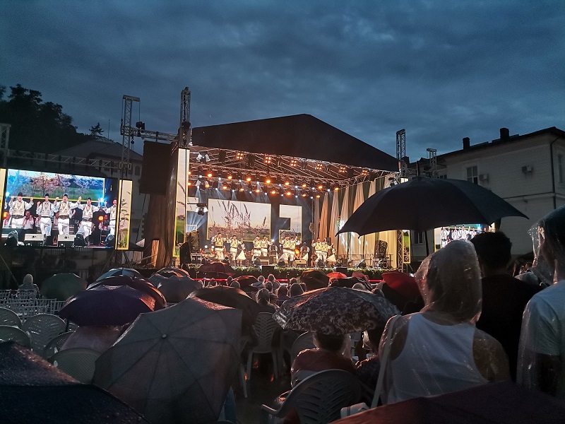 Așteptat de sute de oameni adăpostiți sub umbrele, Fuego a transmis atâta bucurie, drag de costumul popular și de cele mai frumoase și cunoscute cântece, încât ploaia nici n-a mai contat. Publicul l-a ascultat zâmbind și dansând, l-a ovaționat și a reacționat cu entuziasm la fiecare ”Vă iubesc Piatra-Neamț!”. Fiecare zonă etnofolclorică a fost reprezentată cu acuratețe: de la port și dansuri, până la repertoriu. În pauzele necesare schimbării costumelor populare, pe scenă au evoluat absolut impecabil talentații instrumentiști, dansatori și interpreți ai ansamblului Centrului pentru Cultură ”Carmen Saeculare”.
