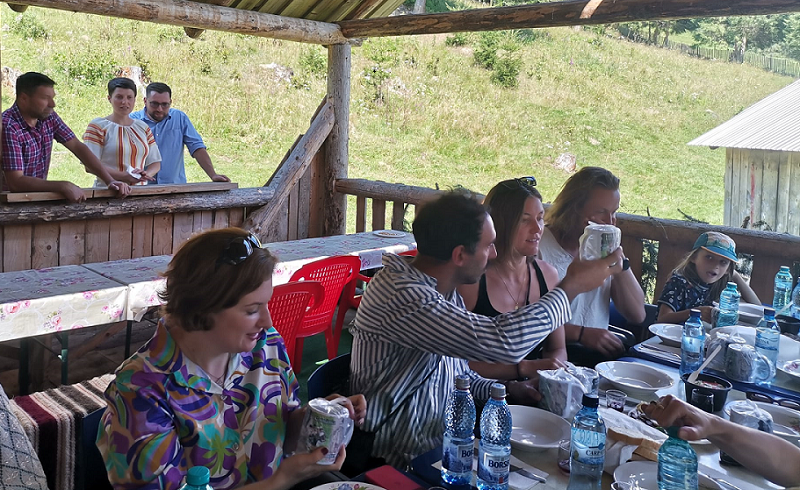 Au fost primiți cu afinată, balmuș și brânză cu smântână, s-au prins în horă, au făcut poze, au admirat caii, pădurea, peisajul. Le-a plăcut totul – locul, atmosfera și, mai ales, oamenii.