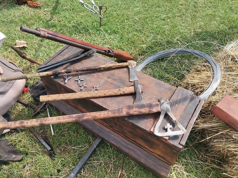 Ioan Olaru a învățat fierărie când era tânăr, dar a devenit făuritor de arme de vreo 6-7 ani, de când fiica lui participă la activitățile organizate de Asociația Profesorilor de Istorie Neamț (APIN): ”Eu fac arme pentru cei care fac mai mult decât mine. Consider că degeaba faci un lucru pe care-l ții undeva uitat ani de zile și nu este prezentat și expus. Până la urmă, copiii ăștia trebuie să vadă ceva, să înțeleagă, să învețe. Lucrez fără să cer bani. Cumpăr eu materiale – fier și lemn, iar uneori, în cadrul asociațiilor, mai facem troc. Spre exemplu ce-am găsit pe piață pentru archebuză nu s-a potrivit la ce-am făcut eu, și o altă asociație mi-a dat ce aveam nevoie. Iar la schimb am dat niște figurine, ca să le picteze copiii”.