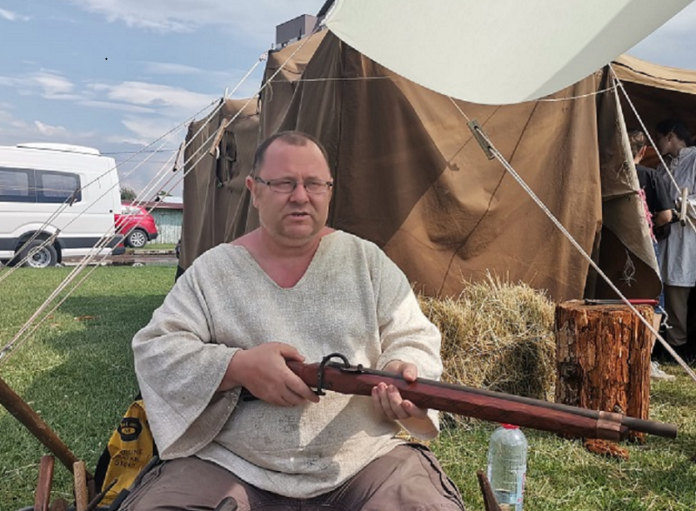 ”Merg la festivaluri ca să le arăt oamenilor – și, în special, copiilor – tehnici care se pierd, pentru ca ei să poată vedea și înțelege cum se fac lucrurile simple. De exemplu, primele arme de foc erau pentru doi oameni: unul încărca și ochea, iar al doilea avea un fitil în vârful unei sulițe și aprindea încărcătura. Archebuza e prima armă manevrată de un singur om. Nu existau la vremea respectivă mecanisme complexe și complicate pentru darea focului. Și atunci ei au preluat acea suliță cu fitil, au transformat-o într-o vergea, pe care puneau o funiuță – o ață special pregătită cu ceară și cu praf de cărbune – o aprindeau și după ce era încărcată țeava cu praf de pușcă, se acoperea și se aștepta momentul prielnic ca să se poată trage. Archebuzele erau eficiente la tragerea în salve, pentru că nu aveau precizie – țevile nu erau ghintuite pe interior, nu aveau acele canale spiralate care să imprime proiectilului o mișcare de rotație care determină precizia”.