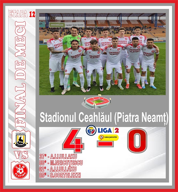 Meci excepțional al CSM Ceahlăul astăzi, 4 noiembrie, cu CSM Slatina, concretizat prin înscrierea a 4 goluri în poarta adversă și printr-un joc în care echipa a construit constant și controlat, până în ultimul minut.