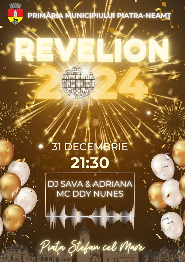 ”Atmosfera și distracția vor fi asigurate de DJ Sava, cunoscut pentru piese care au ajuns în topurile posturilor de radio, și care nu vine singur, ci alături de Adriana și MC-ul DDY Nunes. În deschiderea serii o vom asculta pe Antonia Ciofu, o tânără cântăreață talentată din Piatra-Neamț. Avem toate ingredientele pentru o petrecere reușită, așa că nu ne mai rămâne decât să ne întâlnim cu multă voie bună și energie pozitivă ca să pășim în Noul An cu dreptul. Ne vedem duminică, 31 decembrie, de la ora 21:30, în Piața Ștefan cel Mare!”, a transmis Primăria Piatra-Neamț.