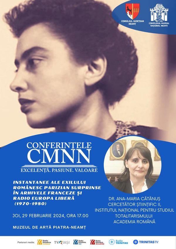 Complexul Muzeal Naţional Neamţ reia seria conferinţelor din cadrul proiectului cultural-ştiinţific „Conferinţele CMNN”, care îşi propune să aducă în faţa publicului nemţean excelenţa, pasiunea şi valoarea prin intermediul unor reprezentanți de marcă din varii domenii ale vieţii cultural-ştiinţifice.