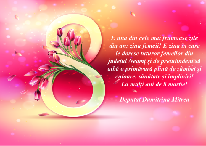 Felicitări de Sărbători Deputat Dumitrina Mitrea De către AtitudineadeNeamț - 08/03/2024 0 FacebookTwitterPinterestWhatsApp Post Views: 39