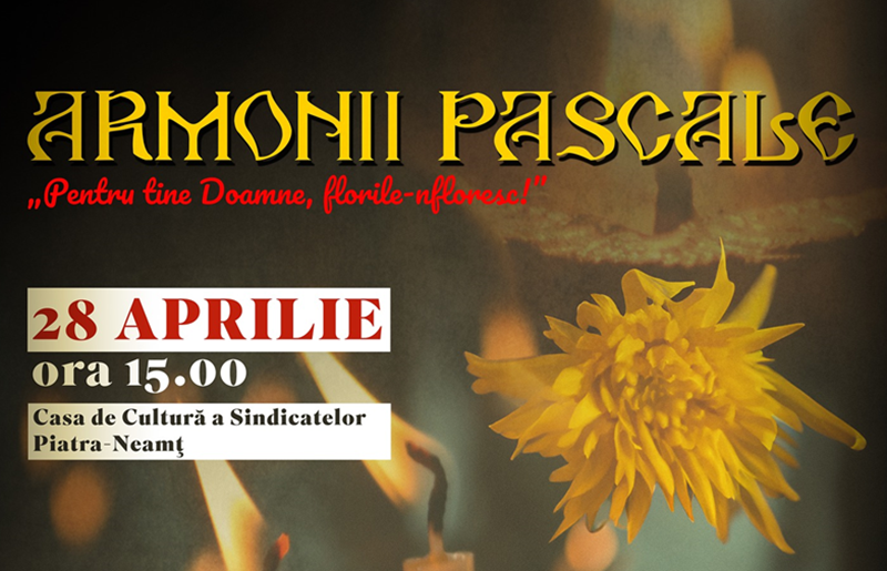 În vederea întâmpinării sfintelor sărbători Pascale ale creștinilor ortodocși, Centrul pentru Cultură și Arte „Carmen Saeculare” Neamț pregătește Concertul extraordinar „Armonii pascale”, programat a avea loc în după-amiaza Sărbătorii Floriilor, duminică, 28 aprilie 2024, ora 15:00.