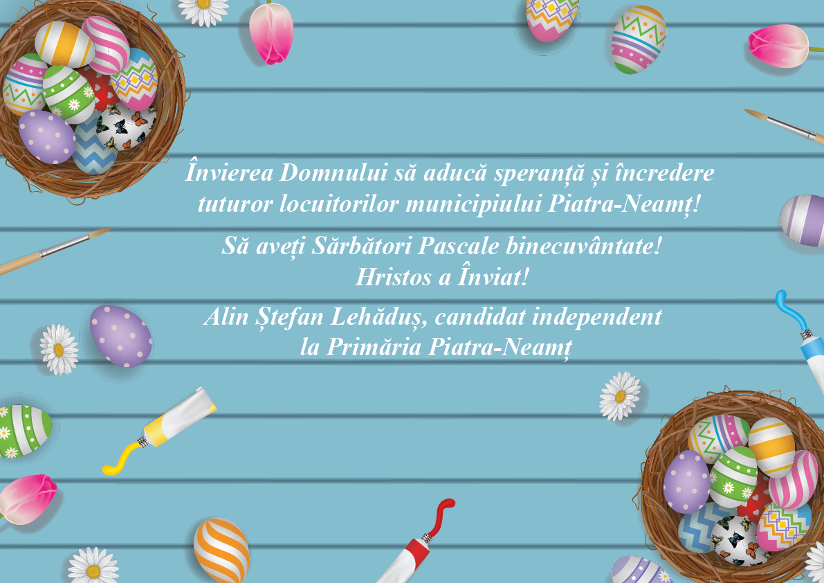 Felicitări de Sărbători Alin Ștefan Lehăduș – candidat la Primăria Piatra-Neamț De către AtitudineadeNeamț - 04/05/2024 0 FacebookTwitterPinterestWhatsApp Post Views: 47