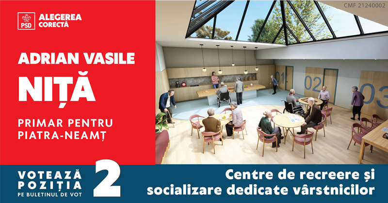 Piatra-Neamț va deveni modelul unei comunități unde vârstnicii se simt sprijiniți și apreciați. Redefinim orașul ca un exemplu de incluziune socială și avem grijă ca bătrânii să nu se mai simtă singuri, să socializeze și să aibă acces la servicii medicale”, a declarat Adrian Niță, candidatul PSD la primăria Piatra-Neamț.