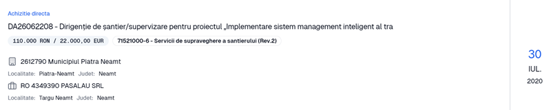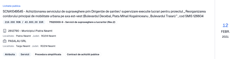 Asocierea SC Păsălău SRL – I.l. Irimia Dragoș Ionel a fost cea câștigătoare. Liderul asocierii de supervizori: SC Păsălău SRL având sediul în Târgu Neamt, str. Ogoarelor nr. 16, jud. Neamț, reprezentată prin dl. Păsălău Dănuț, având funcția de administrator, a încasat 40.000 de euro, pentru a supraveghea lucrările, conform atribuțiilor din contract.