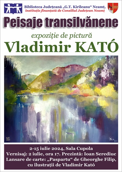 Biblioteca Județeană „G.T. Kirileanu“ Neamț organizează expoziția de pictură „Peisaje transilvănene“ a plasticianului Vladimir Kató, în Sala Cupola, în perioada 2-15 iulie 2023. Vernisajul va avea loc marți, 2 iulie, începând cu ora 17:00, iar prezentarea va fi făcută de comentatorul de artă Ioan Serediuc din Botoșani.