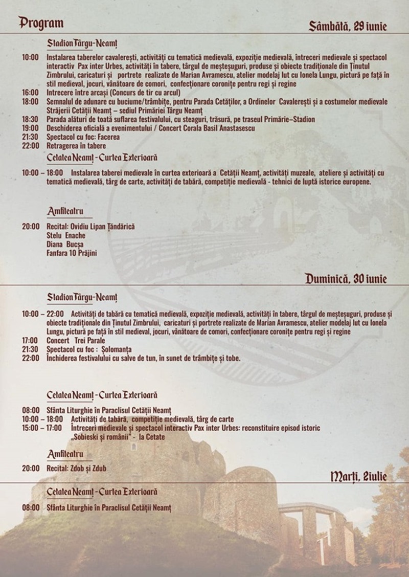 ȘtiriTexte Reconstituiri istorice, tabără medievală și concerte la Zilele Cetății Neamț (program) De către AtitudineadeNeamț - 27/06/2024 0 FacebookTwitterPinterestWhatsApp Post Views: 62