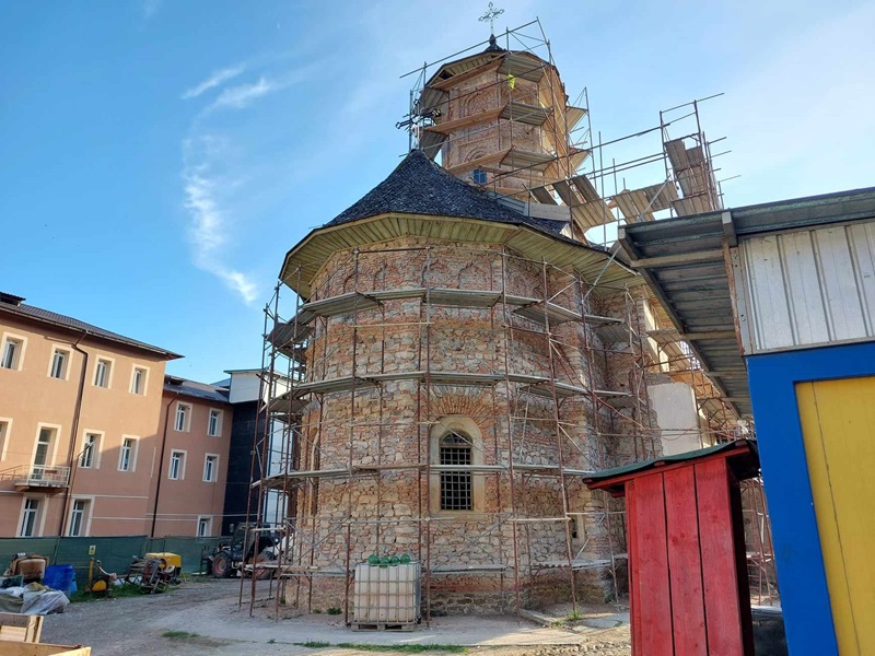 Conform panoului informativ, firma care execută lucrările de restaurare și consolidare este Iasicon Iași, aceeași societate care a restaurat Ansamblul Mănăstirii Tazlău, iar proiectantul este SC Impex Romcatel Cercetare Proiectare SA Iași. Lucrările ar trebuie să se încheie pe 2 iunie 2026.
