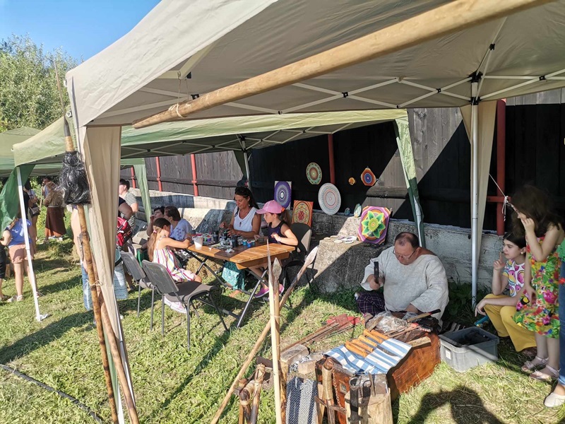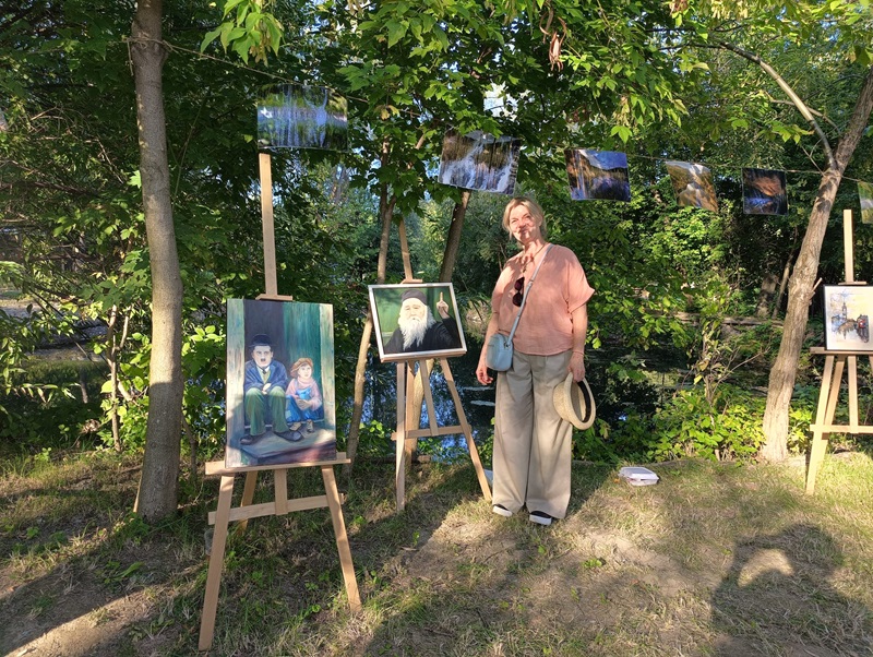 În spatele scenei, sub umbra deasă a sălciilor bătrâne de pe malul iazului s-a scris o poveste colorată. Angelica Șerban – chimistă de profesie și talentată pictoriță de vreo 10 ani încoace – elevă a maestrului Arcadie Răileanu, a expus o parte din lucrările ei. Sute de oameni le-au admirat, le-au fotografiat și le-au povestit mai departe.