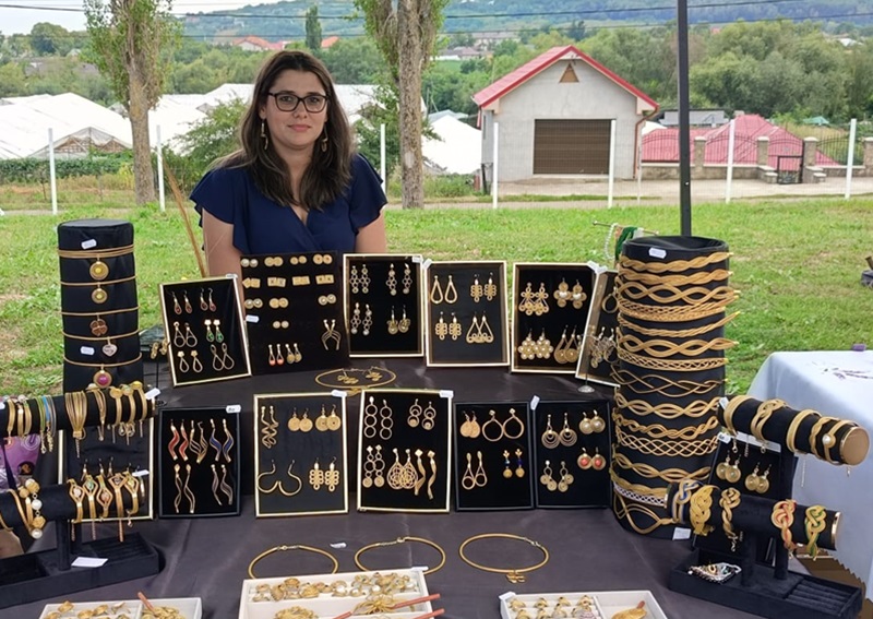În diversitatea de opțiuni, atrăgeau atenția ineditele bijuterii din aur vegetal, create de Magdalena Atudosiei, din Borlești. Tânăra, mămică a doi copii, dintre care unul alergic la ”orice”, este singura din România care are această îndeletnicire: ”Am început să caut modalități ca doamnele să poată purta un auriu frumos, care să semene cu aurul. Și am găsit planta aceasta în Brazilia. E singura plantă din lume care are aceleași proprietăți ca și aurul, nu-și schimbă culoarea, nu oxidează, rămâne exact așa cum este. E destul de greu de lucrat, se lucrează la ud și după aia se coasă. Sunt doar 7 persoane în Europa care fac asta. Eu vând online, dar îmi place să merg la târguri ca să vorbesc cu oamenii, să le explic, să desenez modelele pe care și le-ar dori. Nu contează dacă vând sau nu, important este să fiu printre oameni”.