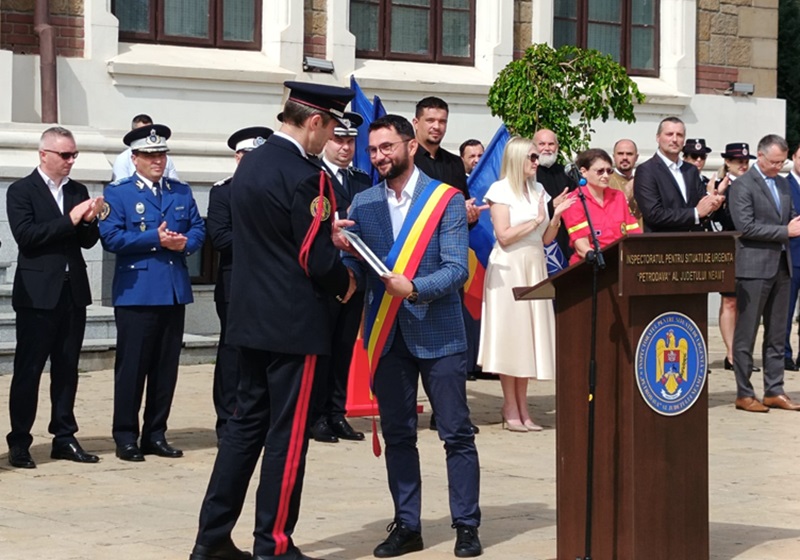 După serviciul religios oficiat de protopopul Valentin Tofan și de preoții militari de la Garnizoana Piatra-Neamț (Daniel Dosoftei) și de la ISU Neamț (Alexandru Sebastian Bența), prefectul și șeful ISU Neamț le-au înmânat noile grade pompierilor care s-au distins prin modul de îndeplinire a atribuțiilor, pregătirea profesională și comportarea demnă.