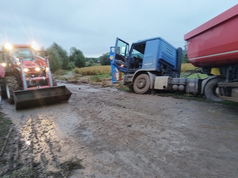 • În comuna Icușești, un buldoexcavator al SVSU a fost folosit pentru îndepărtarea aluviunilor de pe DJ 207D.