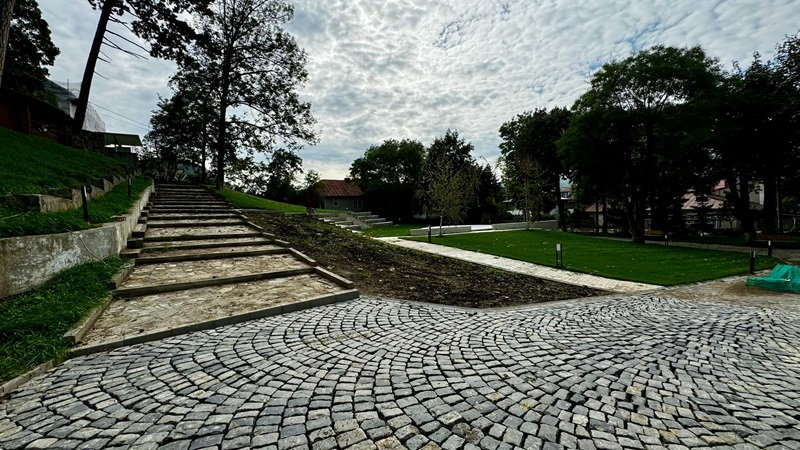 Lucrările de amenajare a Grădinii Publice „Nicu Albu” se desfășoară în ritm accelerat, apropiindu-se de momentul finalizării investiției. În aceste zile sunt în derulare operațiunile de montare a pavajului pe aleile de acces, unde se valorifică piatra cubică extrasă de pe sectorul de drum Colibele Haiducilor – punct Belvedere.