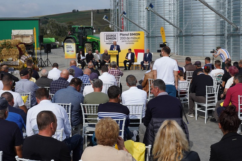 Președintele AUR, George Simion, a prezentat sâmbătă, 5 octombrie, în județul Vaslui, planul de măsuri pentru domeniul agricol. Evenimentul a avut loc la ferma pomicolă și vegetală „Agro Oliver Trans” din comuna Poienești.
