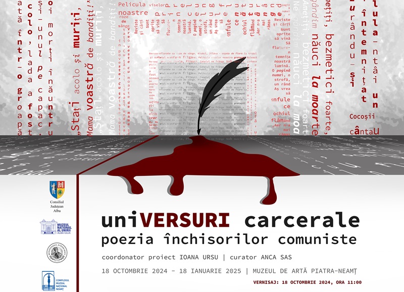 Complexul Muzeal Național Neamț anunță vernisajul expoziției „UniVersuri carcerale. Poezia închisorilor comuniste” care va avea loc vineri, 18 octombrie 2024, ora 11.00, la Muzeul de Artă Piatra-Neamț. Expoziția, coordonată de Ioana Ursu, specialist al Muzeului Național al Unirii Alba Iulia și curatoriată de Anca Sas, pune în lumină, prin cercetarea istorică și artă, o selecție impresionantă de poezii create în spațiul opresiv al închisorilor comuniste. Evenimentul a fost organizat de Consiliul Județean Alba și de Muzeul Național al Unirii Alba Iulia în contextul desfășurării la Alba Iulia a celei de-a X-a ediții a Simpozionului Național de Martirologie.