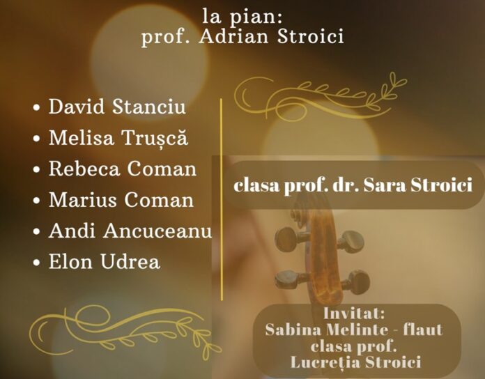„Violoniștii vor veni din București, Maramureș și Târgoviște pentru o seară muzicală de suflet. În favoarea unei diversități timbrale, va cânta invitata lor, flautista Sabina Melinte, elevă a profesoarei Lucreția Stroici de la Liceul de Arte «Victor Brauner» Piatra-Neamț. La pian: profesor Adrian Stroici. În program vor fi lucrări ale compozitorilor: Arcangelo Corelli, Johann Sebastian Bach, Ignace Pleyel, Franz Schubert, Pablo de Sarasate, Tomasso Vitali“, a mai precizat prof. dr. Sara Stroici.