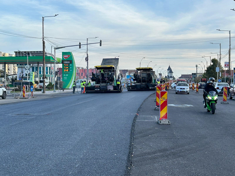 Joi, 31 octombrie, au început lucrările de turnare a stratului final de covor asfaltic pe Bulevardul Traian. Acțiunea a demarat pe prima bandă de circulație, din zona intersecției de la spital, spre intersecția cu strada Fermelor.