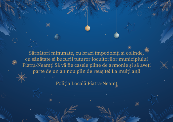 Felicitări de Sărbători Poliția Locală Piatra-Neamț De către AtitudineadeNeamț - 24/12/2024 0 FacebookTwitterPinterestWhatsApp Post Views: 53