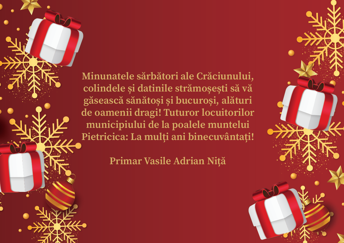 Felicitări de Sărbători Primar Vasile Adrian Niță – Piatra Neamț De către AtitudineadeNeamț - 24/12/2024 0 FacebookTwitterPinterestWhatsApp Post Views: 43