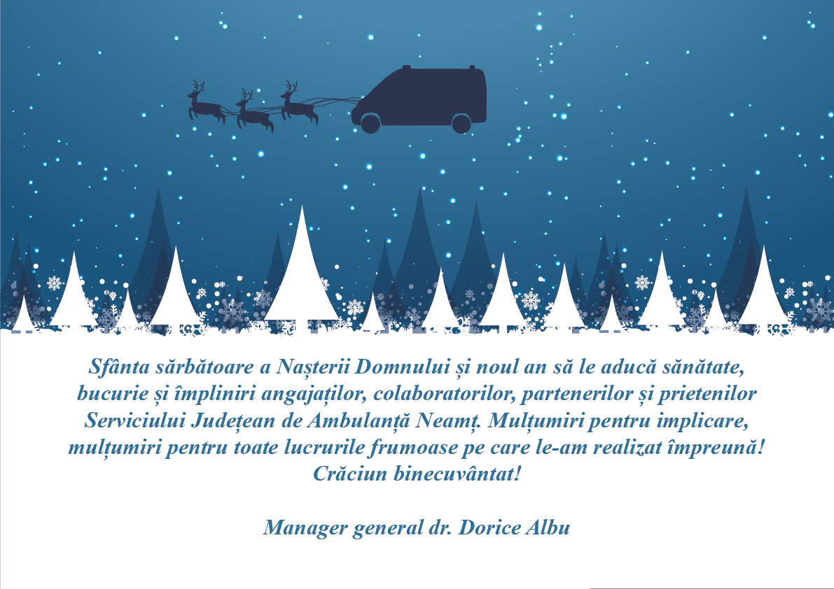 Felicitări de Sărbători Serviciul Județean de Ambulanță Neamț De către AtitudineadeNeamț - 24/12/2024 0 FacebookTwitterPinterestWhatsApp Post Views: 38