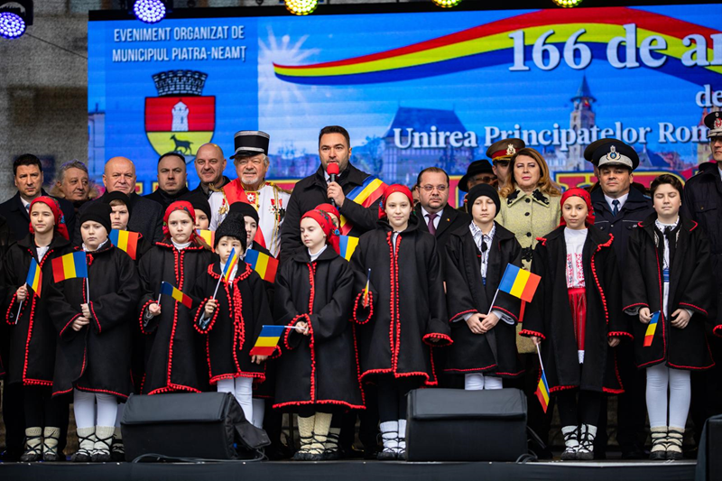 „Astăzi sărbătorim o zi importantă pentru națiunea noastră, o zi în care ne-am unit cu toții inimile și împreună am decis că trebuie să mergem înainte. Și am făcut astfel poate primul pas pentru a înființa România modernă. Astăzi e un motiv de bucurie și sunt fericit că sunteți într-un număr atât de mare aici, pentru că trebuie să conștientizăm cu toții că doar uniți vom fi o forță și că împreună, în viitor, vom putea, respectând ceea ce ne-au lăsat înaintașii noștri, să ducem și noi mai departe. Să dea Dumnezeu să fiți sănătoși, să aveți spor în viață și în credință! La mulți ani, români! La mulți ani, România! La mulți ani, nemțeni!” a declarat primarul municipiului Piatra-Neamț, Adrian Niță.