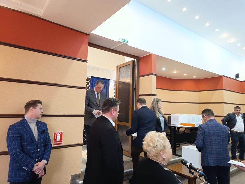 În imagini, noii vicepreședinți: Ion Asaftei, ieșind din cabina de vot, și Mihaela Isciuc discutând cu colegii de partid.
