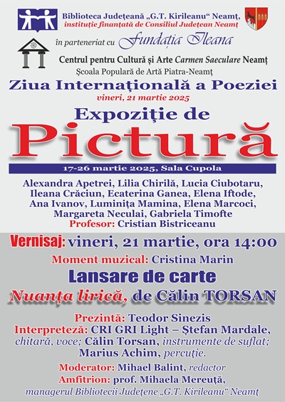 Biblioteca Județeană „G.T. Kirileanu“ Neamț celebrează Ziua Internațională a Poeziei, 21 martie, cu o suită de manifestări culturale desfășurate în cursul mai multor zile.