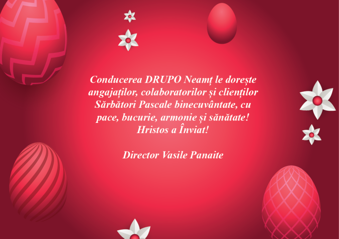 Felicitări de Sărbători Conducerea DRUPO Neamț De către AtitudineadeNeamț - 19/04/2025 0 FacebookTwitterPinterestWhatsApp Post Views: 45