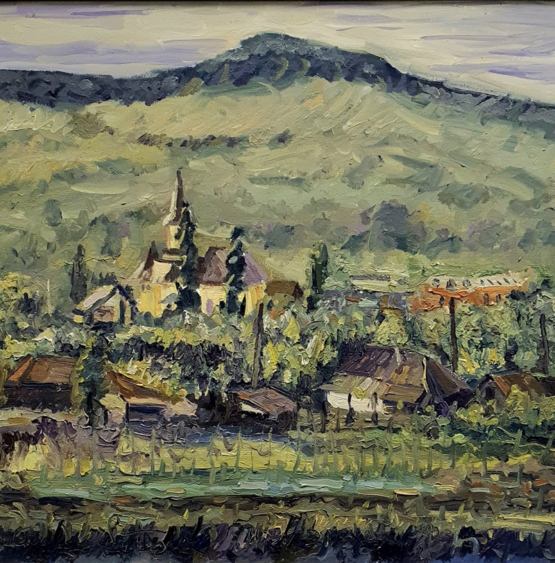 Ceea ce ni se dezvăluie privirilor, la primele impresii, sunt surprinderi de treceri, zvâcnete de momente cromatice, în unduiri de umbre și lumini, oferind un spectacol al sensibilității proprii fiecărui artist, în vibrante acorduri de armonie specifice penelului personal. Descoperim abordări ale acelorași colțuri de natură,  în diferite viziuni, în  același limbaj dar în forme și subtilității diverse, invitându-ne la o repovestire, cu trăiri și perceperi diferite, devenind provocări pentru vizual și suflet, finalitatea fiind aceeași: frumosul pictural în aer liber, oferit cu generozitate, pentru un plus de încântare și pace sufletească. Fiecare lucrare devine o revelației a unui suflet pentru suflet, cu interpretări estetice profunde. Câmpii și dealuri, munți și ape, sub paveze de înalturi, se ițesc în colorituri când delicate, când intense, în povestiri de lumini cerești, în odihniri de umbriri terestre. Tușele vibrante și spontane, armonia compozițiilor și echilibrul cromatic, sunt cele care îi definesc pe cei patru artiști, oferind fiecare în parte și toți împreună, un spectacol al plein-air-ului. Farmecul colțurilor de natură, asupra cărora s-au oprit artiștii noștri, cu sensibilități aparte, transformă pânzele în universuri vizuale de impact, emoționante și încântătoare. Lucrările devin unitare ca tematică și expresivitate, în întregiri inspiraționale, transformându-se într-un omagiu adus splendorilor naturii, în ode cromatice cu intensități de infinit. Unduiri de ramuri, de vârfuri de copaci, care se înclină în concerte de anotimpuri, când autumnale, când primăvăratice, de iarnă sau vară, în pânze dinamice și vibrante, invită la contemplare. Ochiuri albăstrii de izvoare, lacuri, se înfiripă în șipotiri de liniște și calm, de prin stufărișuri sau maluri proteguitoare. Șerpuitoare cărări, ulițe pierdute printre trecuturi, fără de-nceputuri, fără de sfârșituri, nu scoborâtoare ci mereu urcătoare, căutătoare de deschideri, de parcă  ne cheamă din vremi uitate, sfătoase, răscolite de pași prăfuiți de istorie. Prin colțuri cu umbre de tăcere, zidiri de-altădată, apăsătoare și răzlețe, povestitoare ale unor trecute trăiri, își duc destinul încărcat în așteptări răbdătoare. Semețe turle de biserici se-nalță spre ceruri zvăpăiate, când agitate, când senine, într-o chemare spre dumnezeire. Înfloriri de primăvară,  străluciri de vară, bogății de toamnă și odihniri de ierni, se revarsă în palete sensibile și generoase cromatic.