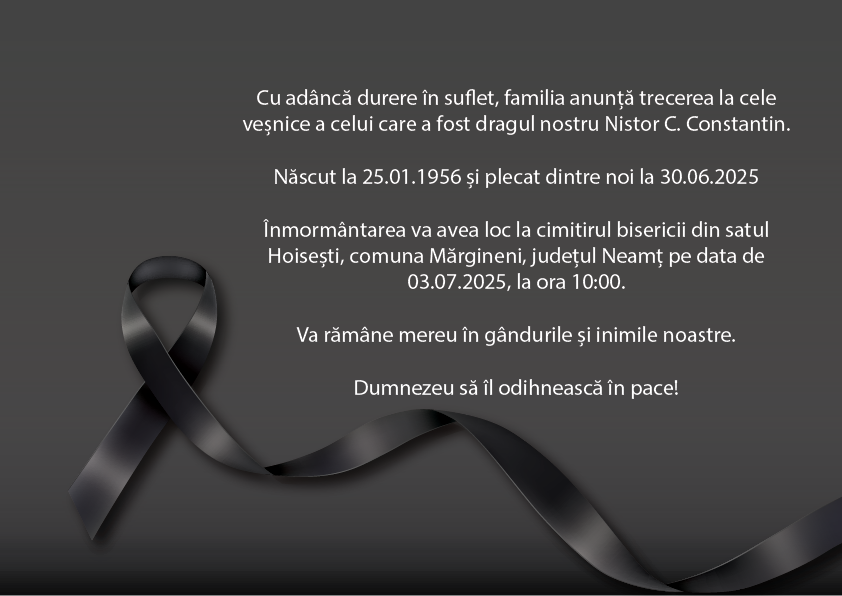 Anunțuri Anunț deces Nistor Constantin De către AtitudineadeNeamț - 02/07/2025 0 FacebookTwitterPinterestWhatsApp Post Views: 61