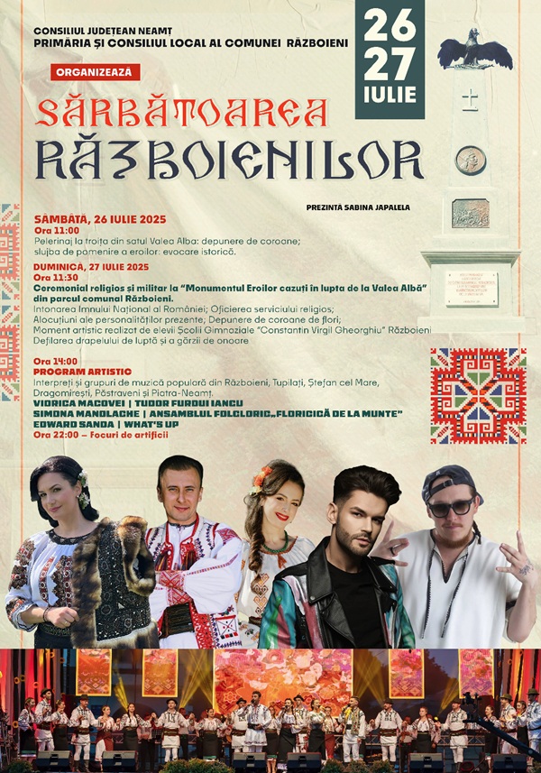 În fiecare an, la sfârșitul lunii iulie, comuna Războieni devine centrul uneia dintre cele mai importante manifestări culturale și comemorative din regiune: Sărbătoarea Războienilor.