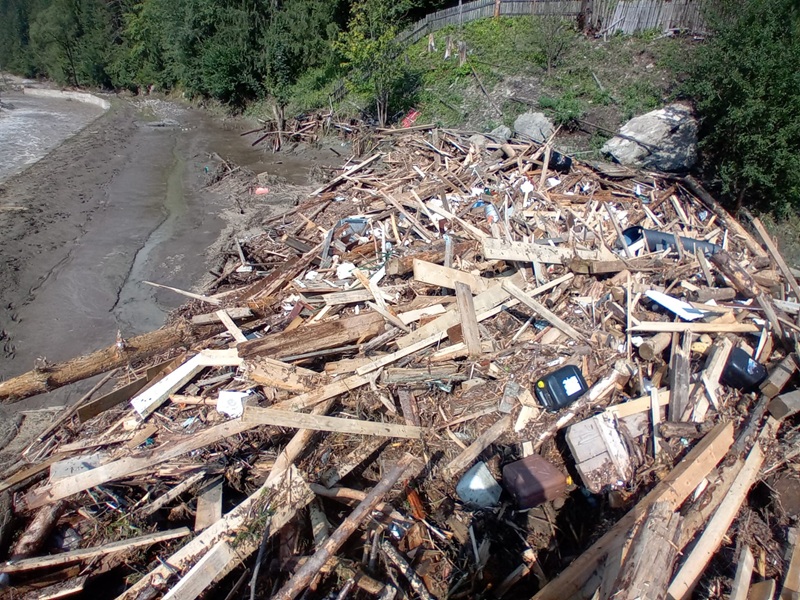 Gospodării distruse, animale moarte, fântâni și curți pline de mâl, sute de oameni evacuați – asta a rămas după inundațiile devastatoare din noaptea de 27 spre 28 iulie, în 3 comune din județul Neamț. În plus, în zona Viaductului de la Poiana Teiului au ajuns sute de tone de deșeuri de tot felul. Luciul apei nu se mai vede de sub cantitățile imense de lemn, frigidere și tot felul de obiecte din casele măturate de ape. Sub mormanele de gunoaie sunt, cu siguranță, foarte multe animale înecate.