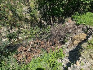 Ploile abundente au degradat vizibil gabioanele de pe malurile pârâului Schit, iar locuințele de pe strada Alunului și Drumul Județean 155 F sunt în pericol.