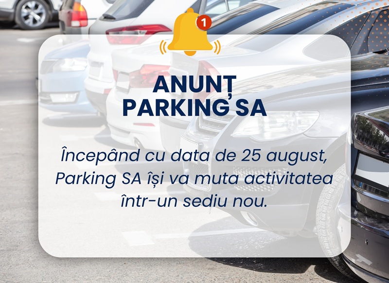 Vineri, 22 august, activitatea cu publicul la SC Parking va fi suspendată. Măsura este necesară pentru relocarea sediului societății de la Mall Forum Center (Piața Sfântul Gheorghe).