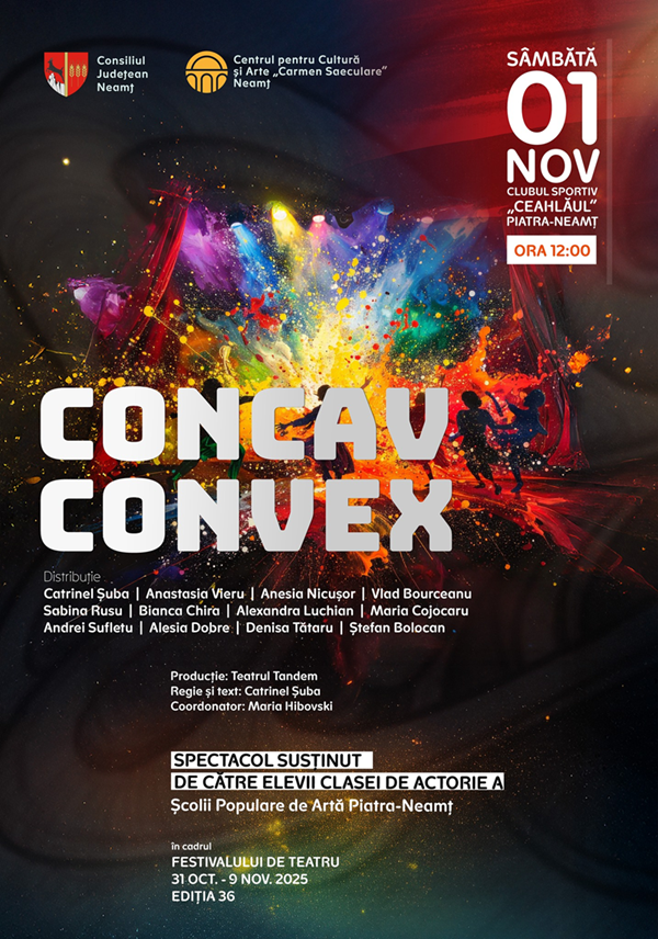 Producția Teatrului „Tandem”, „CONCAV-CONVEX” care cuprinde cursanți de la clasa de actorie a Școlii Populare de Artă Piatra-Neamț a fost selectată pentru a fi prezentată în cadrul ediției a XXXVI-a a Festivalului de Teatru, eveniment major organizat de Teatrul Tineretului. Spectacolul este cea mai recentă producție a grupei de liceeni. În distribuție se regăsesc adolescenți talentați din oraș – Catrinel Șuba, Anastasia Vieru, Bianca Chira, Denisa Tătaru, Vlad Bourceanu, Maria Cojocaru,  Anesia Nicușor, Alexandra Luchian, Sabina Rusu, Teodora Crețu, Gabriela Drăgan, Andrei Sufletu, Alessia Dobre. Textul și regia sunt semnate de Catrinel Șuba, care a lucrat sub directa îndrumare a coordonatoarei activității clasei de actorie, actrița Maria Hibovski.