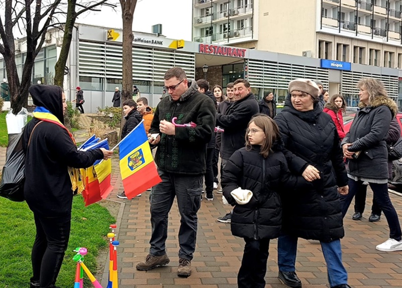 Deși vremea n-a fost chiar prietenoasă, dar măcar n-a plouat, mii de oameni (între 7.000 și 8.000 după estimările forțelor de ordine) au participat la ceremonia organizată în Piața Ștefan cel Mare, de Ziua Națională. Vânzătorii de stegulețe (10 lei bucata) au avut clienți, copiii fiind, în general, cei care le cereau părinților să le cumpere tricolorul.